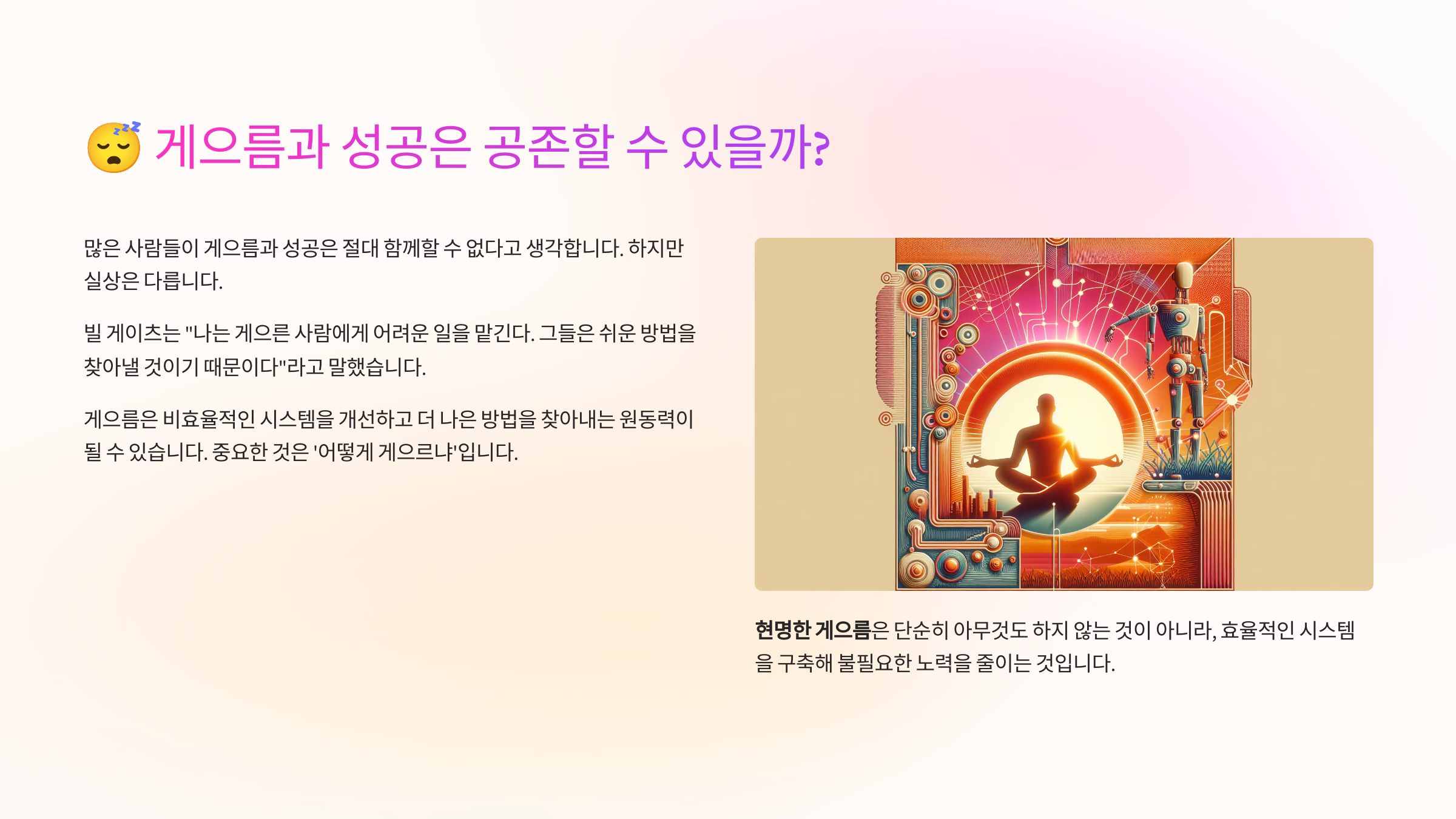 실제로 많은 성공한 인물들이 ‘게으른 천재형’으로 분류돼요. 이들은 꾸준함보다는 ‘꾸준해 보이는 자동화’된 방식을 통해 성과를 내고 있어요. 게으름과 성공은 공존이 아니라 오히려 ‘전략적 조합’이 될 수 있어요.