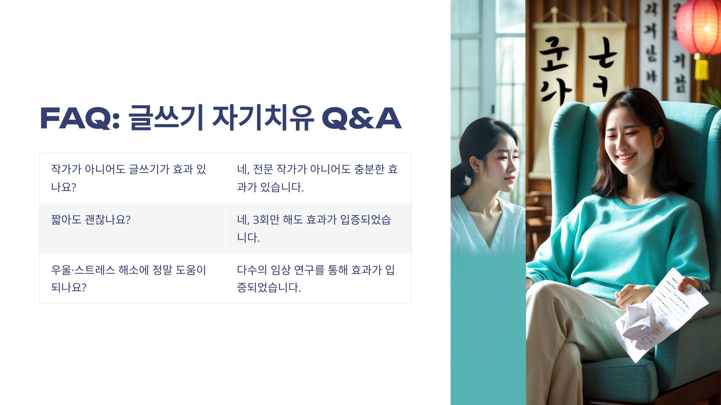 A4. 괜찮아요! 글쓰기는 마음의 문을 여는 과정이니, 울음도 자연스러운 치유예요.
