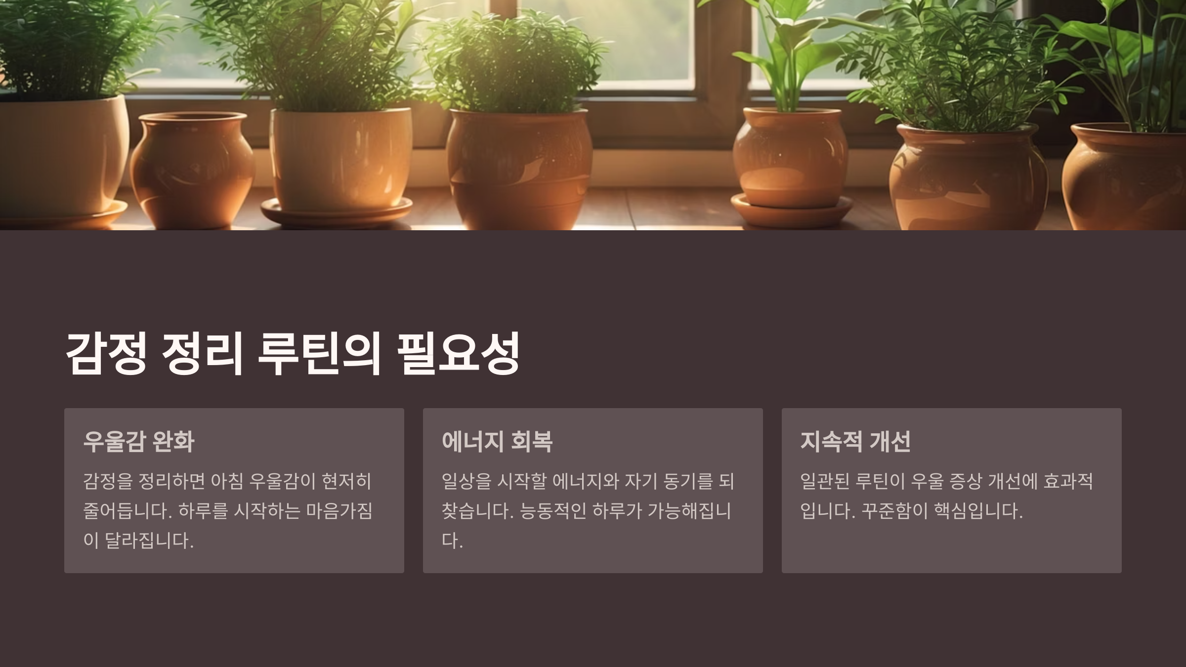 이런 아침 우울감은 단순한 기분 탓이 아니라, 몸과 마음이 보내는 중요한 신호일 수 있어요. 오늘은 그 신호를 어떻게 받아들이고, 나만의 감정 정리 루틴으로 하루를 바꾸는 방법을 소개할게요. 제가 생각했을 때, 이 루틴은 정말 효과가 있어요!