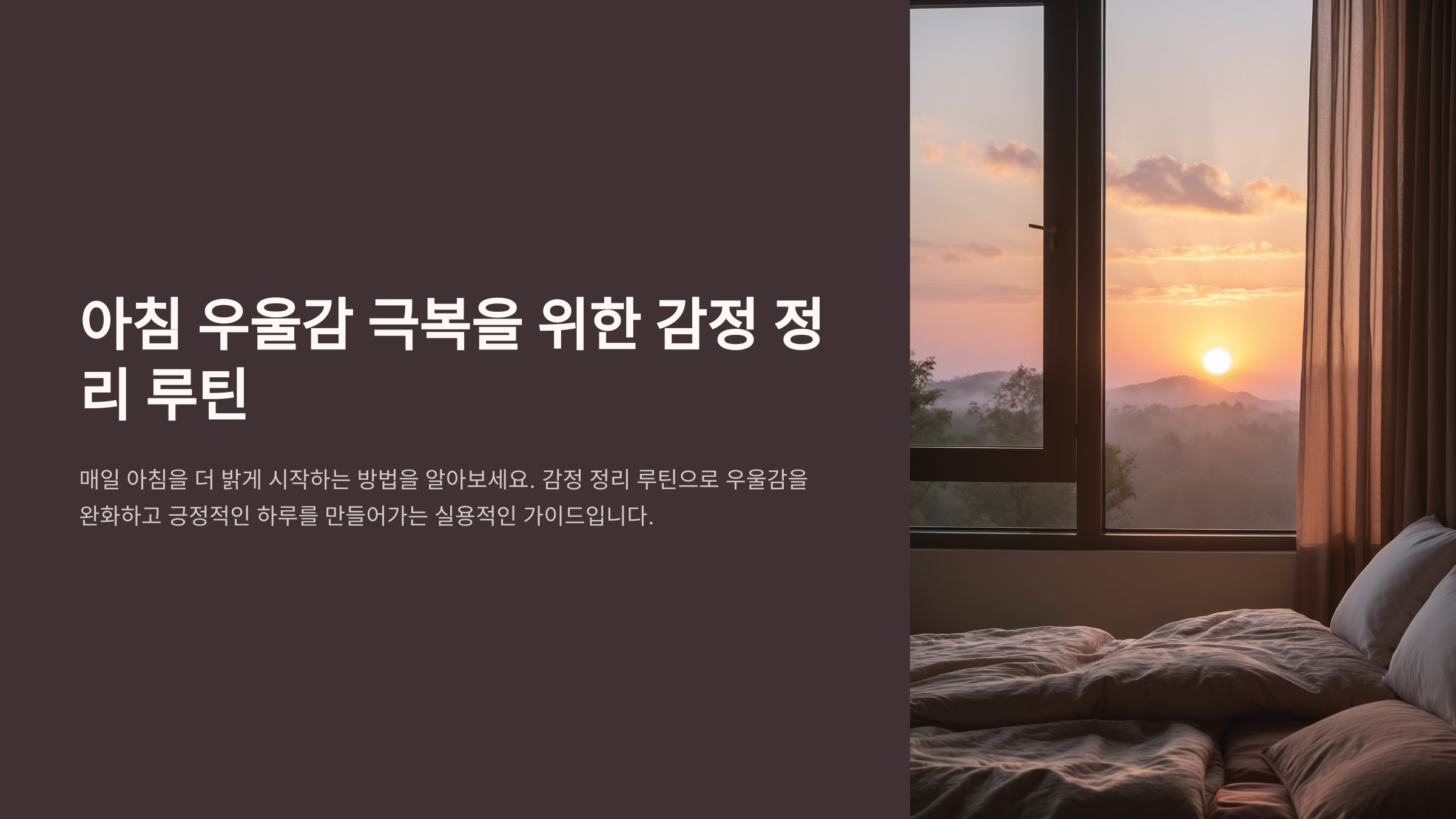 특히 반복되는 우울한 아침을 겪는 분들이라면, 이 글을 통해 매일 아침 새로운 기분으로 하루를 시작할 수 있는 실질적인 팁들을 얻을 수 있을 거예요.