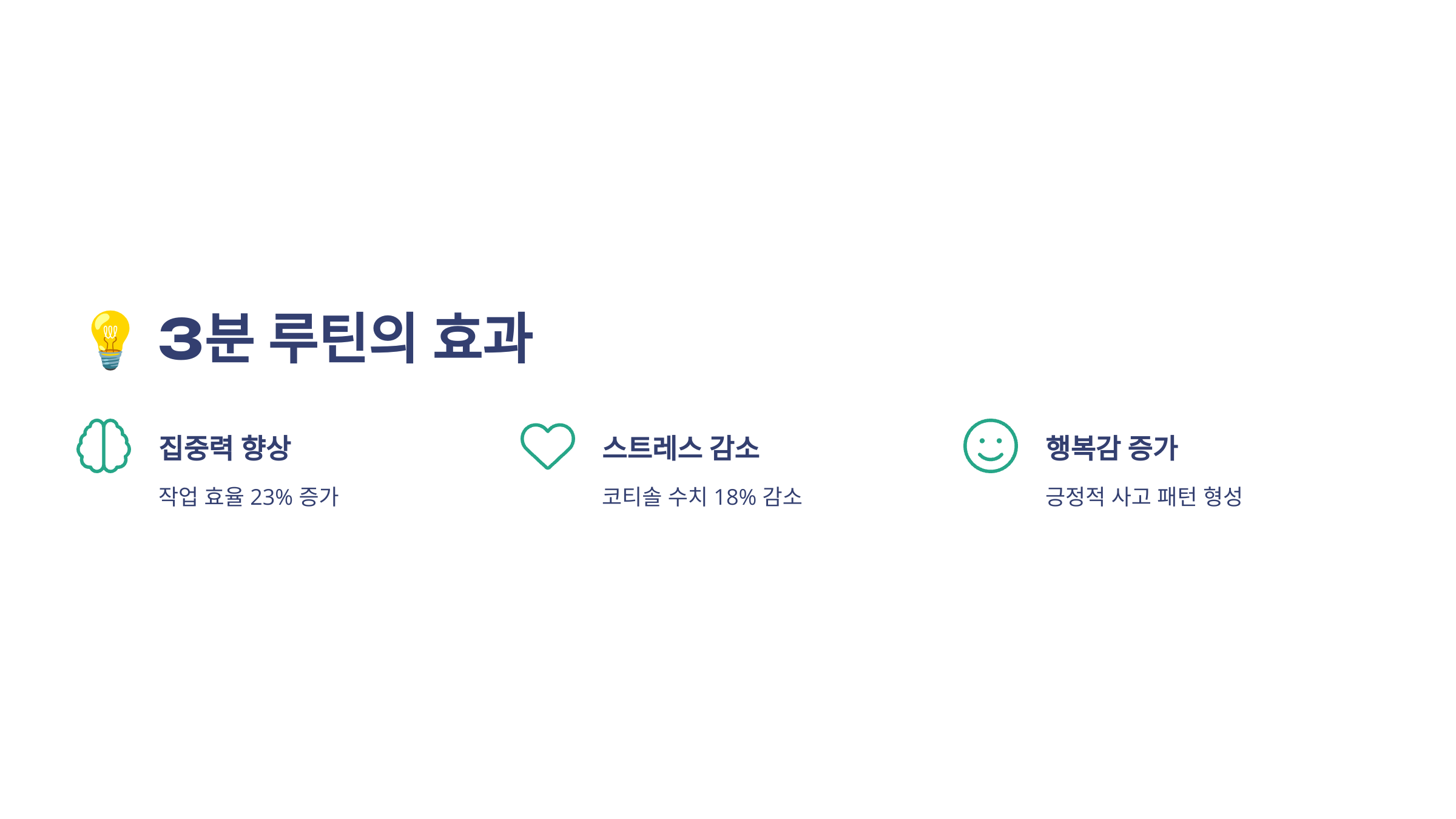 사실 현대인의 아침은 굉장히 분주하고 급박하기 때문에 감정 상태를 체크할 여유조차 없기도 해요. 그래서 '3분 감정 정리 루틴'은 시간을 많이 투자하지 않아도 되면서 효과는 강력하다는 점에서 매력적이에요.