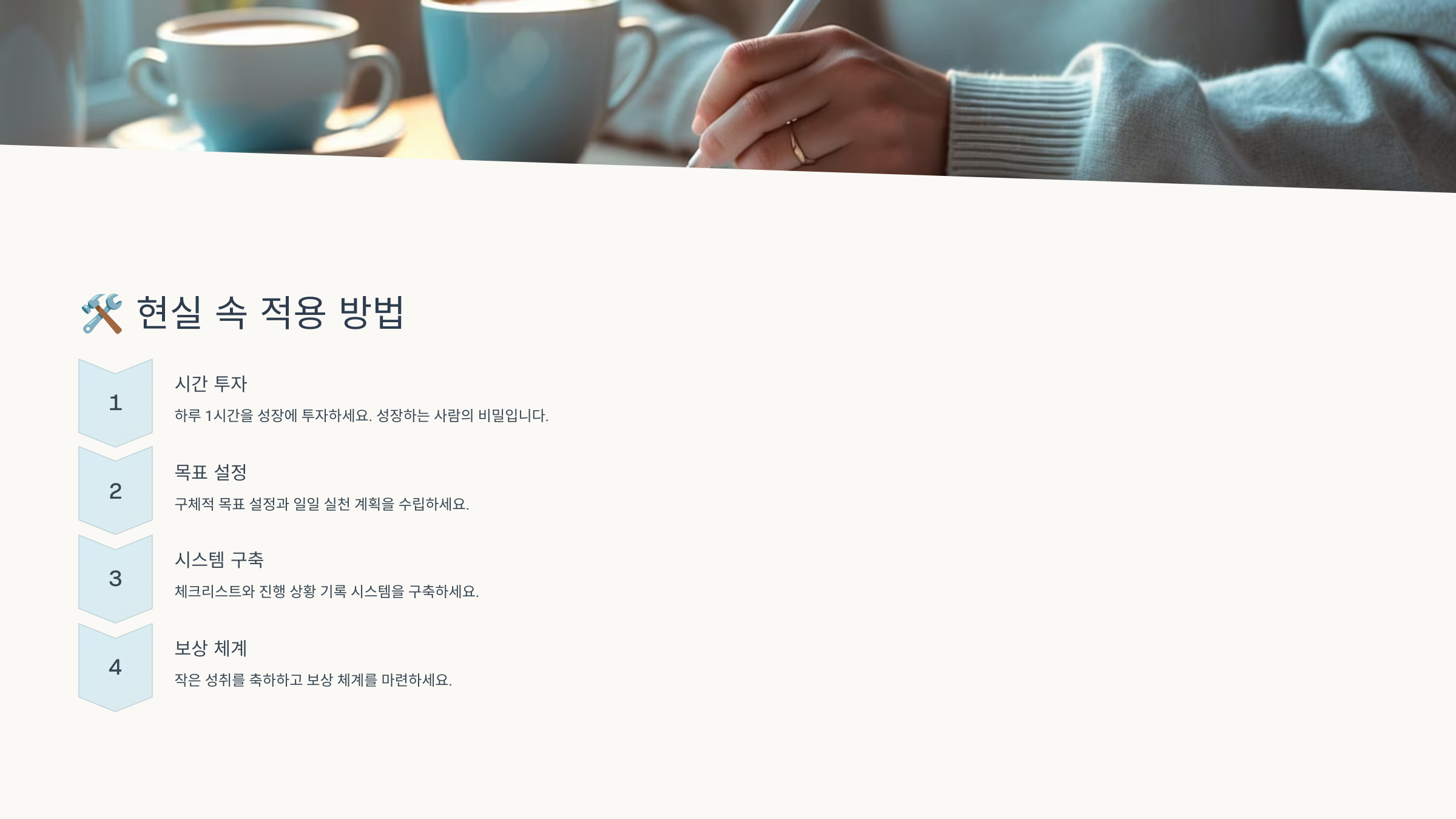 또한 이런 복리적 사고방식은 돈 관리, 공부, 관계 등에도 적용돼요. 하루 1%씩 더 이해하고, 더 배려하고, 더 기록하는 것만으로도 삶이 바뀌죠.