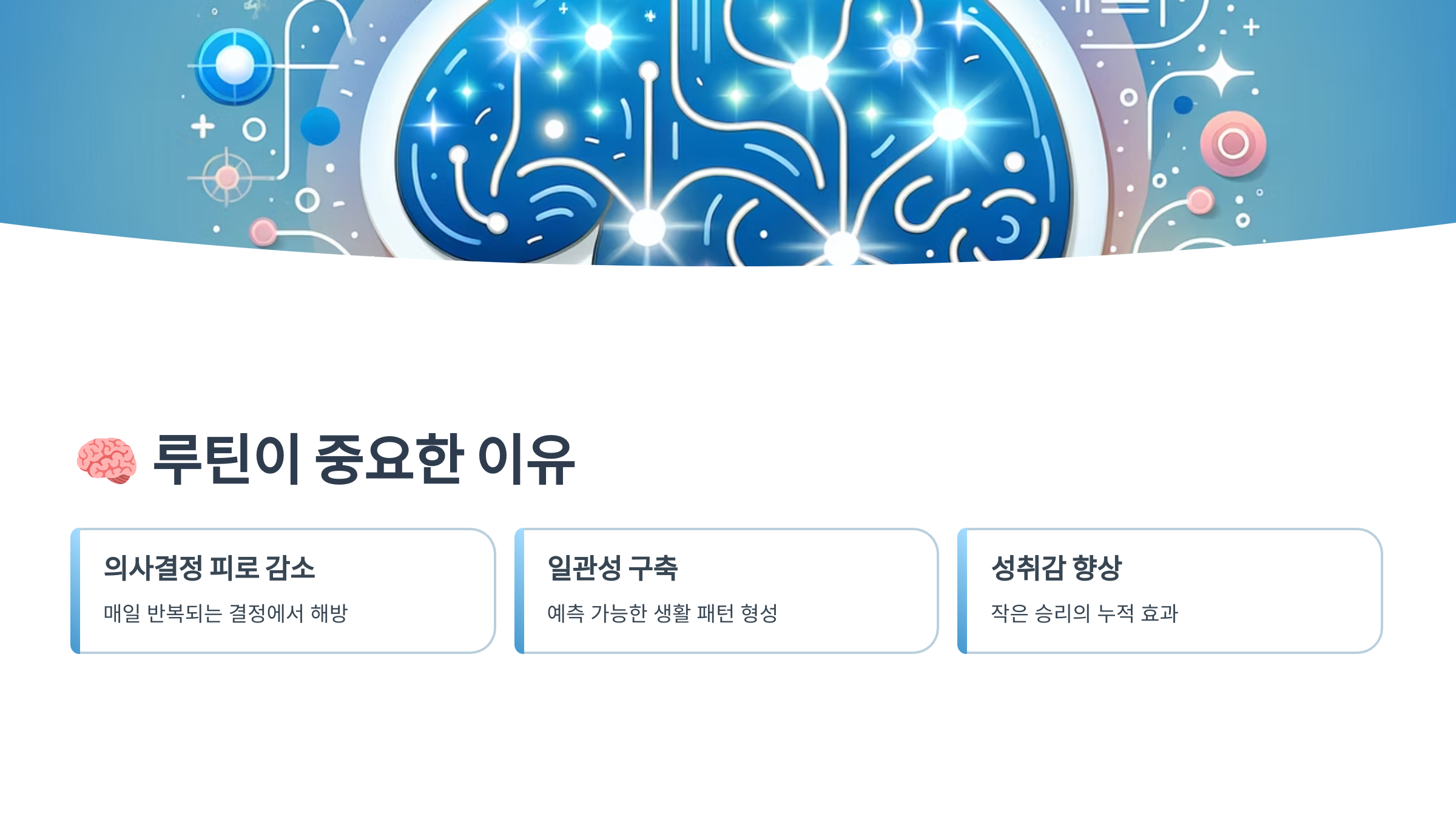 루틴은 단순히 '반복'이 아닌, 삶의 방향을 설정해주는 중요한 툴이에요. 바쁜 일상 속에서 우리는 수많은 선택을 하고, 그 과정에서 뇌는 피로감을 느끼게 돼요. 바로 이때 루틴이 있으면 의사결정을 줄여주기 때문에 에너지를 아낄 수 있답니다.